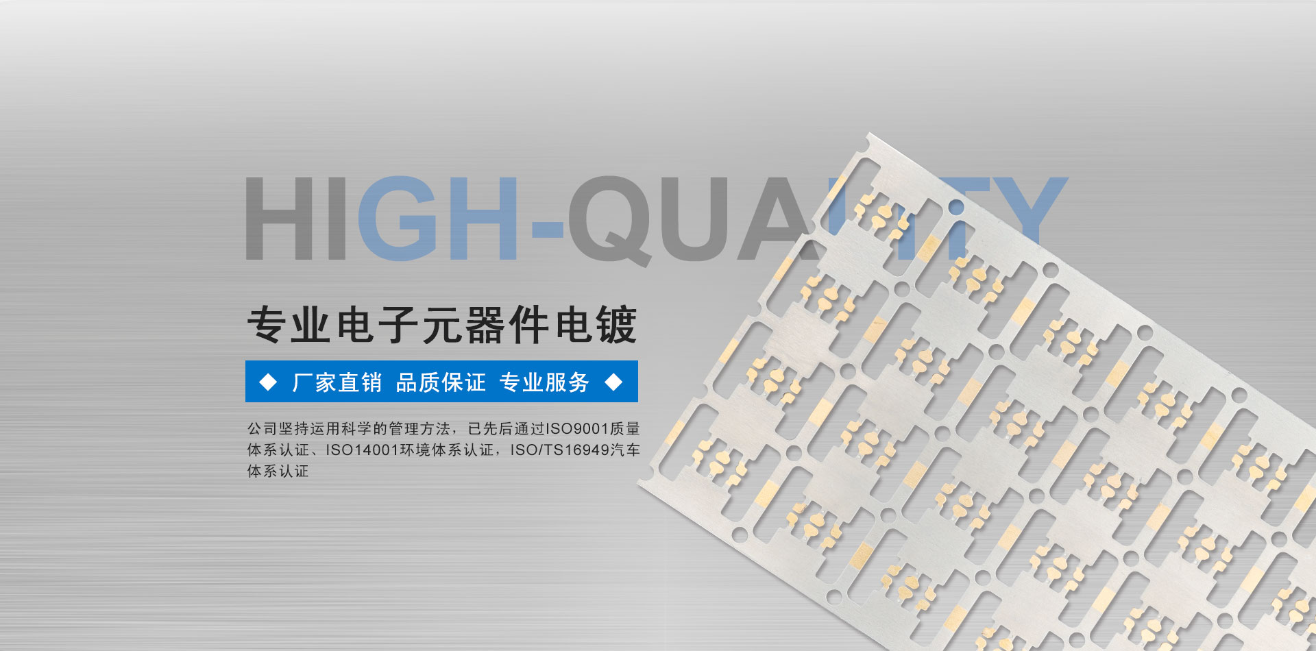 • 公司專業提供精密電子元器件的電子電鍍、電鍍金、電鍍銀、電鍍鎳、電鍍銅、電鍍錫、IGBT電鍍模塊、板材電鍍、連續電鍍、線材電鍍、回流錫等加工服務。